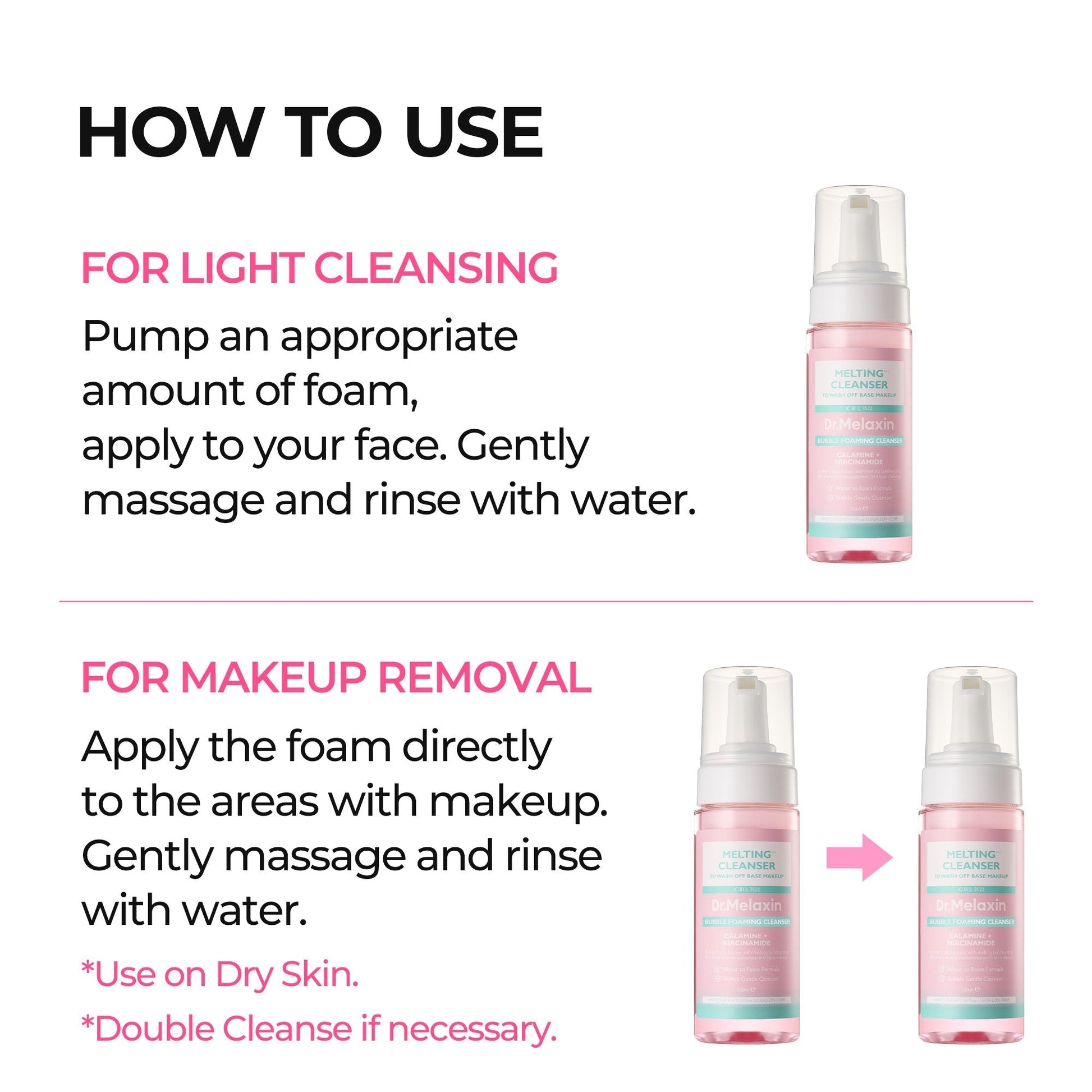 For light makeup, a single wash is sufficient to remove it,If you're wearing color makeup or have a thicker base, you may not be able to dissolve as much in one step, so we recommend a double cleansing.
